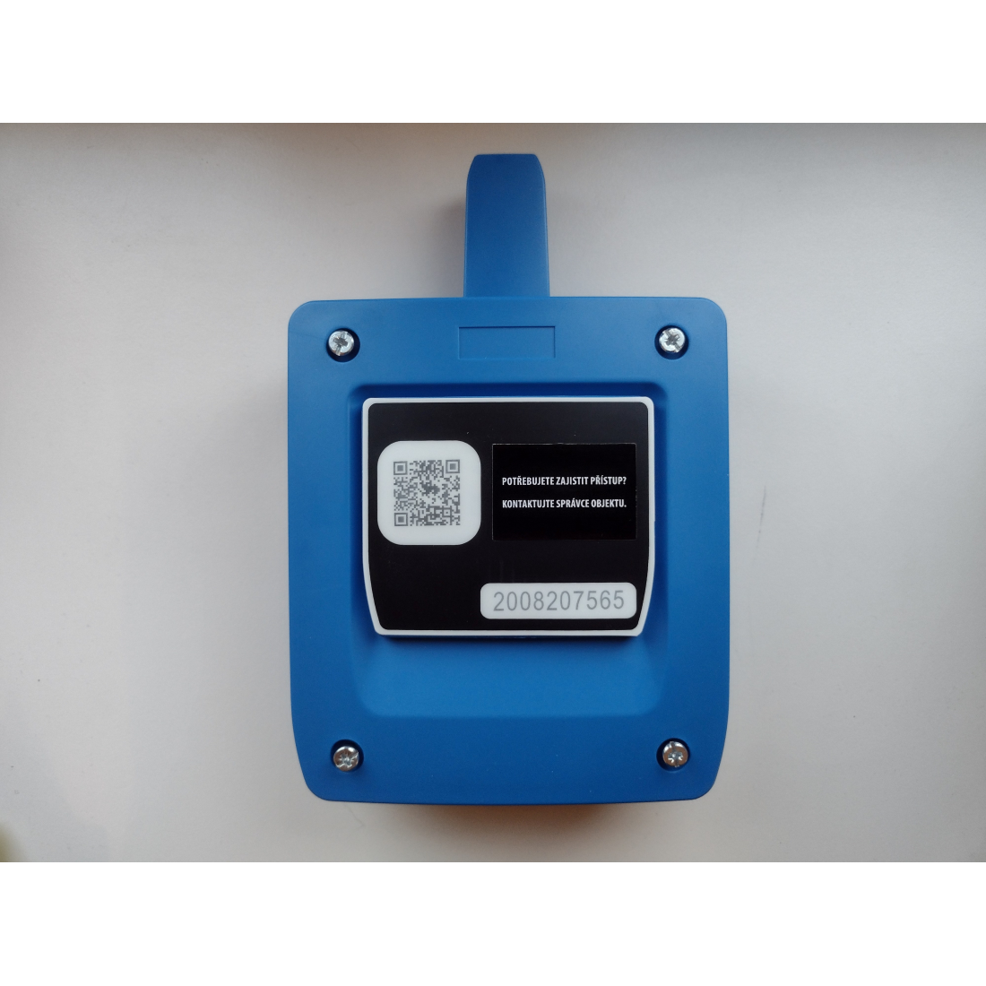 Samolepka pro přelep anglického textu na přijímačích HONOA. Znění textu: "Potřebujete zajistit přístup? Kontaktujte správce objektu". QR kód na krytu přijímače může odkazovat na Vaše kontaktní údaje.